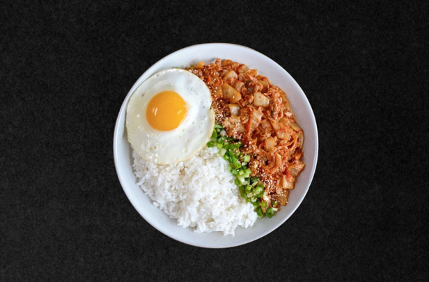 Cơm trắng gà xào kimchi